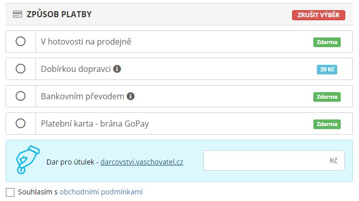 15) Nepodceňte nabídku oblíbených platebních metod (nezapomeňte např. na Twisto) a možností dopravy (výdejny, Zásilkovna, Balíkobot).