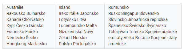 Reklamy jsou povolené v následujících zemích: