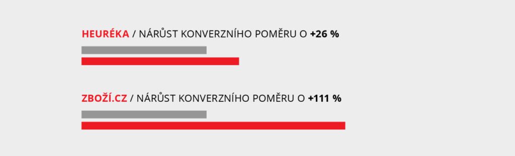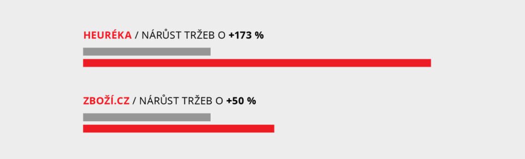 Po převzetí účtů jsme kompletně změnili strategii na Heuréce i Zboží.cz. Zaměřili jsme se s důrazem na last-click konverze na maximalizaci spárovanosti produktů do relevantních kategorií, bidding na úrovni jednotlivých produktů a ve výsledcích vyhledávání. Společně s implementací Heuréka košíku a využitím externího nástroje Mergado jsme při požadované efektivnosti během dvou let dosáhli: