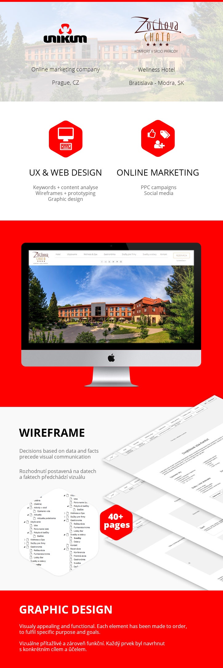 Pro našeho významného klienta Hotel Zochova Chata jsme vytvořili webovou prezentaci, v rámci které jsme dodali analýzu klíčových slov, wireframe, grafický návrh a taky logickou strukturu objednávkového formuláře. Webová prezentace je samozřejmě responzivní a dokonale uzpůsobená pro marketingovou propagaci, kterou teď pro klienta zabezpečujeme.