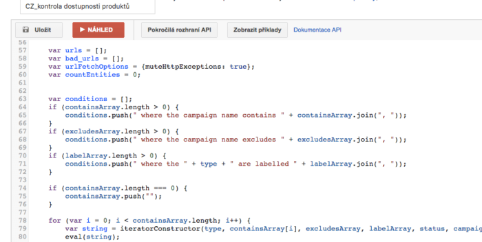 Představte si e-shop, jehož sortiment dosahuje stovek až tisíců položek, a zároveň na mnoho z těchto produktů inzeruje v rámci PPC reklamy. Není v silách žádného klienta, ani agentury, aby každý den zkontroloval, zda některý produkt nebyl vyprodán, či neklesl počet produktů skladem pod určitou hranici. Jistě byste nechtěli inzerovat na produkty, které nemáte v nabídce. Skript na kontrolu dostupnosti produktů vám automaticky zkontroluje veškeré reklamy (např. 1x denně nebo 1x za hodinu) a v případě, že takový produkt nalezne, reklamu (v našem případě reklamní sestavu) pozastaví.